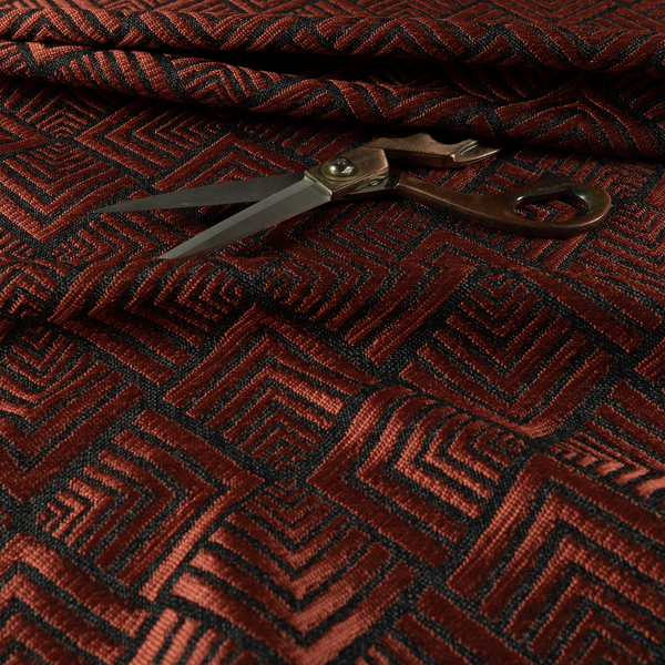 Bahija Geometric Uniformed Pattern Black Red Colour Upholstery Fabric CTR-2479